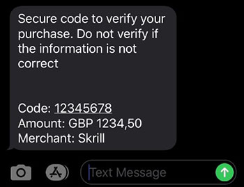 An example of an SMS containing a SecureCode can be seen here: