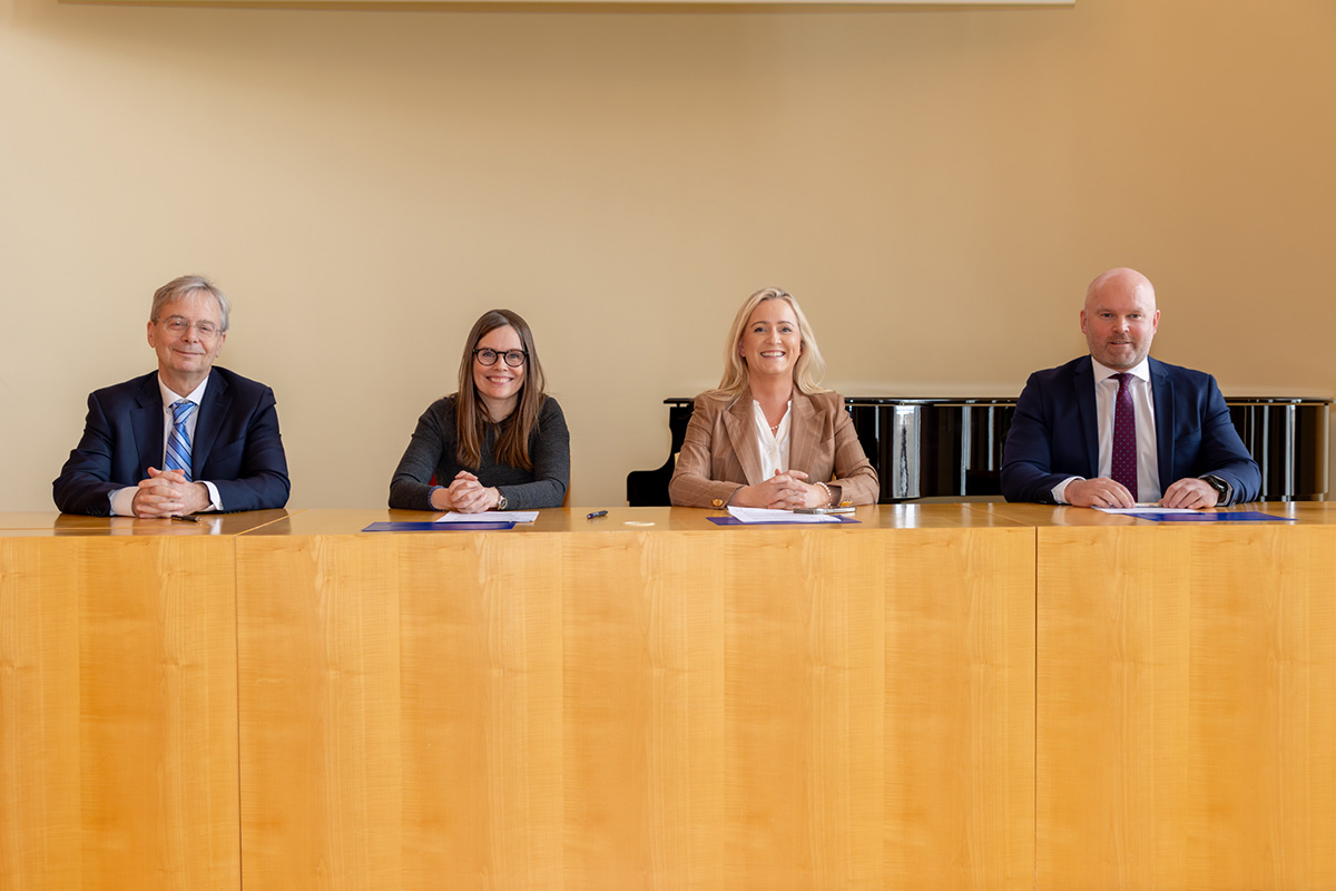 Í hátíðarsal Háskóla Íslands rituðu Jón Atli Benediktsson, rektor Háskóla Íslands, Katrín Jakobsdóttir, stjórnarformaður setursins, Snædís Ögn Flosadóttir, forstöðumaður hjá Arion banka og Jóhann Möller, framkvæmdastjóri markaða hjá Arion banka, undir þriggja ára samstarfssamning Arion banka og rannsóknasetursins.