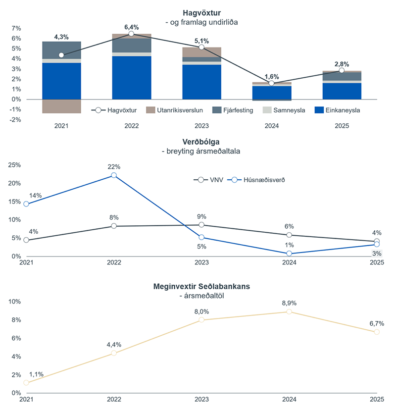 Hagkerfið er almennt í góðu ásigkomulagi og við erum bjartsýn á framtíðarhorfur efnahagslífsins. Þar skipta metnaðarfull áform í fiskeldi, orkuskiptum, ýmsum tæknigreinum, lyfjaiðnaði og fleiri atvinnugreinum miklu máli. Spáin er þó farfærin hvað þessi áform varðar en gangi þau eftir eru líkur á að hagvöxtur geti verið sögulega mikill næstu ár.