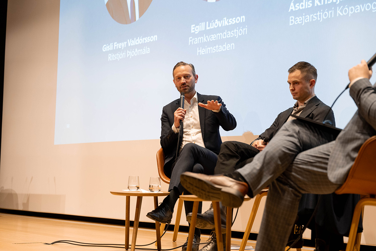 Að loknum flutningi erindanna þriggja stýrði Gísli Freyr Valdórsson, ritstjóri Þjóðmála, fjörlegum pallborðsumræðum. Þar mættust þau Ásdís Kristjánsdóttir, bæjarstjóri Kópavogs, Egill Lúðvíksson, framkvæmdastjóri Heimstaden og Einar Þorsteinsson, borgarstjóri Reykjavíkur.