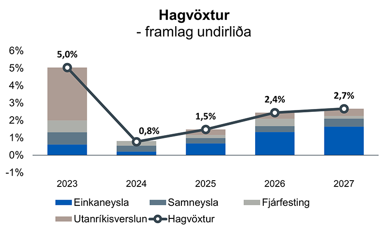 Það dylst engum að krefjandi tímar eru fram undan og munu næstu misseri vafalaust reyna á þolrifin. Engu að síður teljum við að þjóðarskútan komist í gegnum þessa haustlægð án þess að steyta á skeri og að hagvöxtur glæðist á ný árið 2026, þá drifinn áfram af innlendri eftirspurn og útflutningi, einkum ferðaþjónustunni.