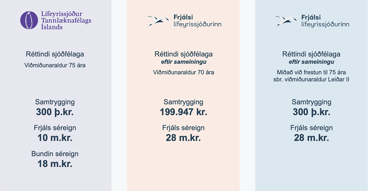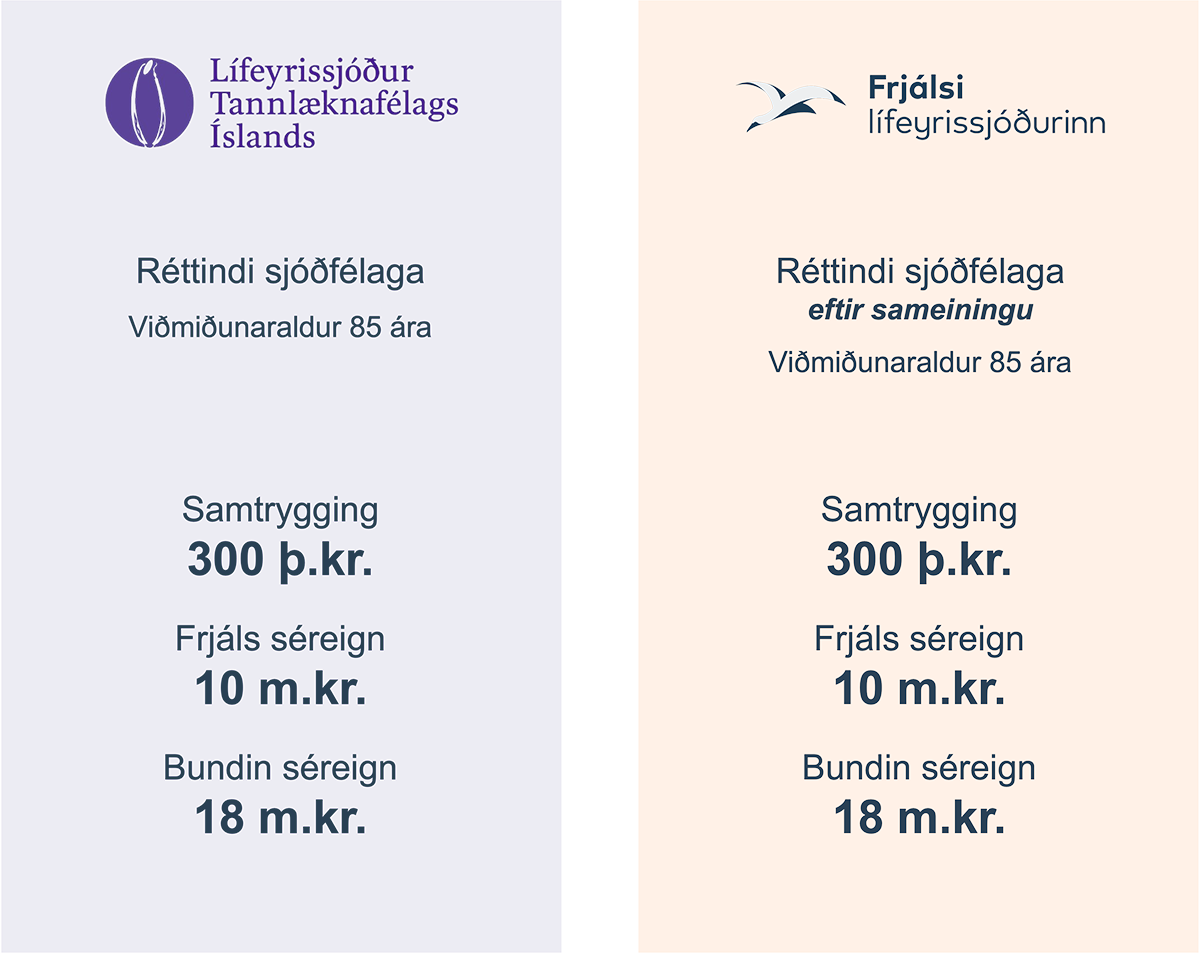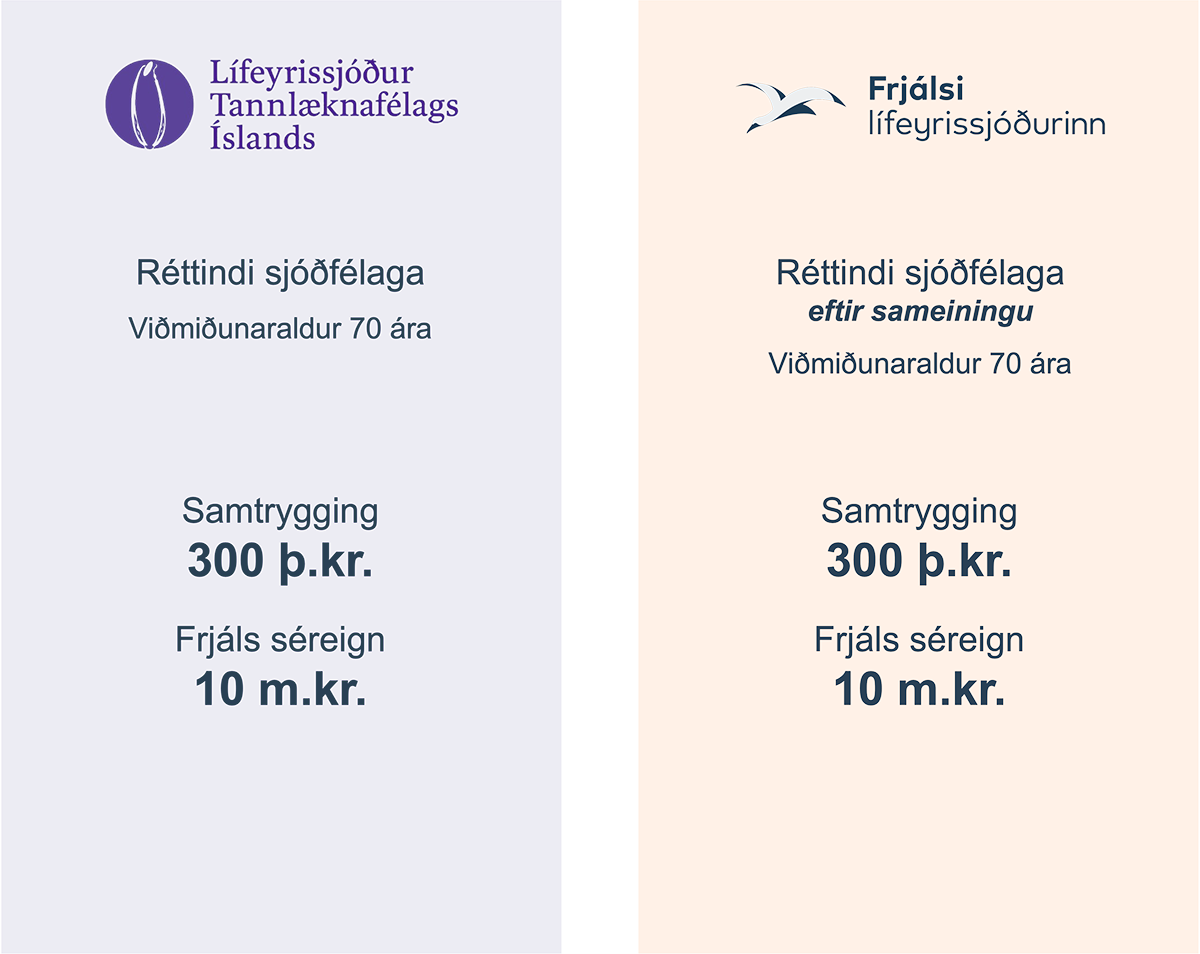 Við sameininguna færast áunnin réttindi sjóðfélaga LTFÍ inn í Frjálsa m.v. 31. desember 2025. Viðmiðunaraldur réttinda kemur til með að breytast sbr. hér fyrir neðan.