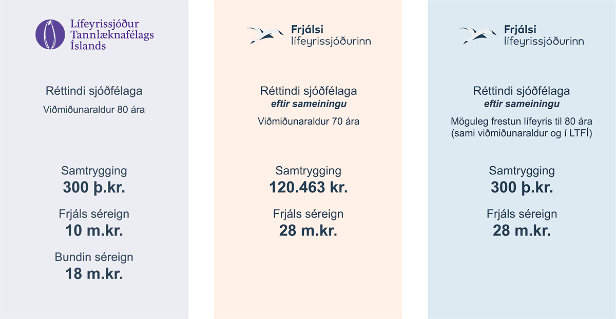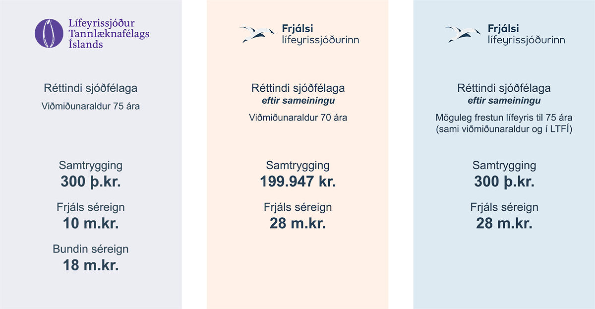 Stefnt er að sameiningu sjóðanna miðað við stöðu eigna og skuldbindinga 31. desember 2025 og frá þeim tíma tekur Frjálsi við iðgjöldum og greiðir út lífeyri til sjóðfélaga LTFÍ.