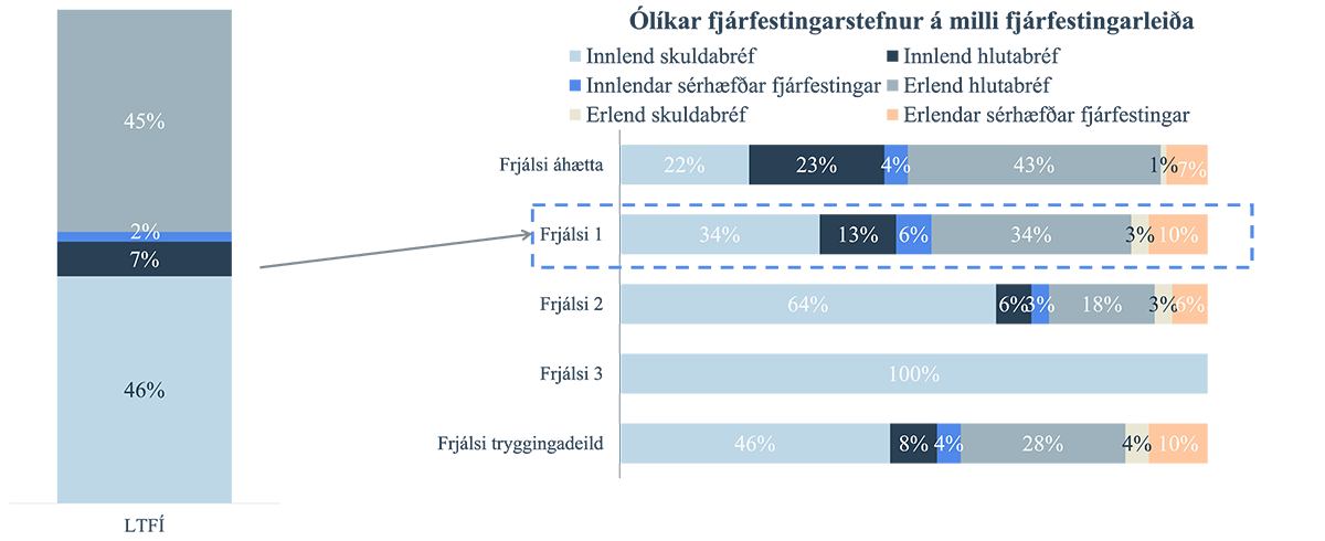 Frjálsi býður upp á fjórar misáhættusamar fjárfestingarleiðir fyrir séreign. Fyrst um sinn mun séreign allra sjóðfélaga LTFÍ færast í Frjálsa 1 en eftir að sameiningin gengur í gegn verður auðvelt fyrir sjóðfélaga að breyta um fjárfestingarleið, kjósi þeir svo, í Arion appinu eða á Mínum síðum Frjálsa án kostnaðar. Sjóðfélagar geta flutt séreign á milli leiða og breytt í hvaða fjárfestingarleið framtíðariðgjöld eru greidd.