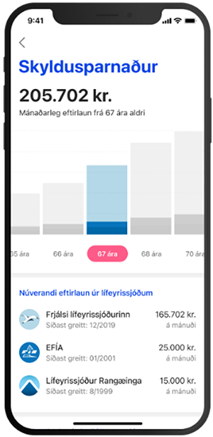 - Fá aðgengi að lífeyrisþjónustu alla virka daga, í gegnum netspjall, síma og tölvupóst.